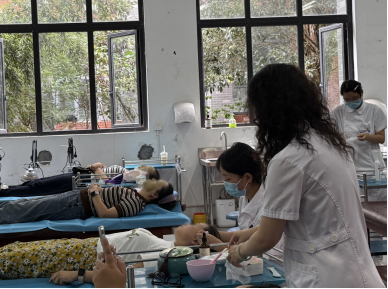 校工会还联合学院附属医院特别策划了“美丽与健康同行——教师节美容义诊”活动,中医康复科主任周陆凝带着团队走进校园,为教师们开展古法拔筋、中医面膜、美容针灸,以及局部针雕等义诊服务。前去体验的老师络绎不绝,医师团队专业的技法和温暖的服务让体验者收获了一份节日特别的关爱。
